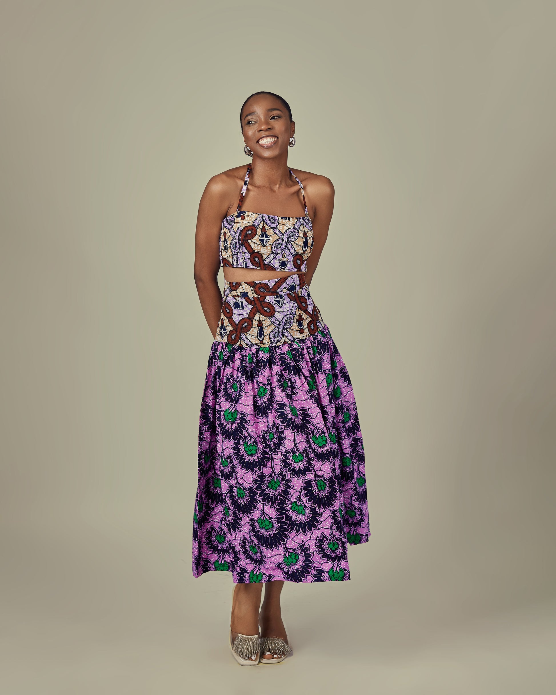 MIXED PRINT CROP TOP & SKIRT (RTS)